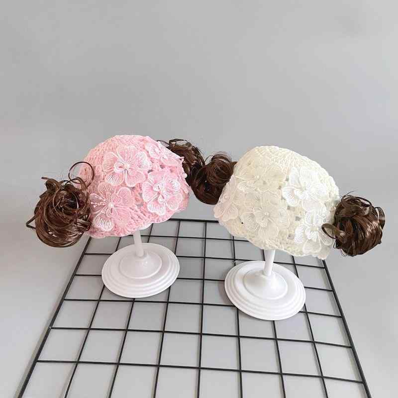 帽子 キッズ 子供 男の子 女の子 ベビー 春秋 花 ニット帽 ホワイト ピンク