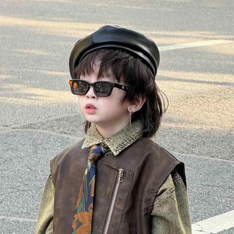 ベレー帽 キッズ 子供 ベビー 男の子 女の子 男女兼用 秋冬 防寒 防風 画家帽 レザー フェイクレザー PUレザー 通園 通学 お出かけ 普段使い カジュアル ベージュ コーヒー ブラック キャラメル