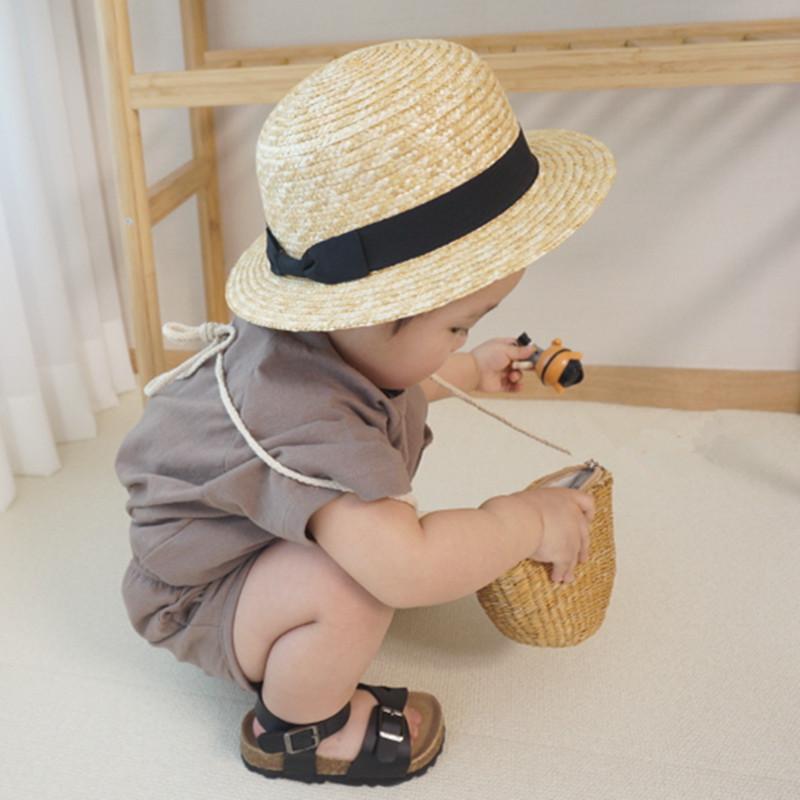 麦わら帽子 キッズ 男の子 女の子 ベビー 春夏 韓国風 かわいい ラウンドトップ 日よけ UVカット 通気性 アウトドア 普段使い