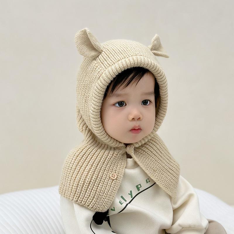 帽子 キッズ ベビー 男の子 女の子 耳付き マフラー一体型 ふわふわ ニット帽 あったか 暖かい 防寒 秋冬用 かわいい おしゃれ 子供用
