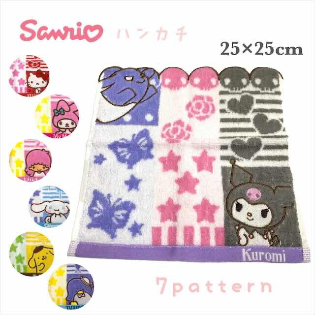 サンリオ タオル ウォッシュタオル シャンブル ハンカチ クロミ マイメロ キティ リトルツインスター シナモンロール ポムポムプリン タキシードサム スター 星 人気 キャラクター グッズ キッズ ベビー 男の子 女の子 子供 子ども 可愛い プレゼント ギフト ハロウィン
