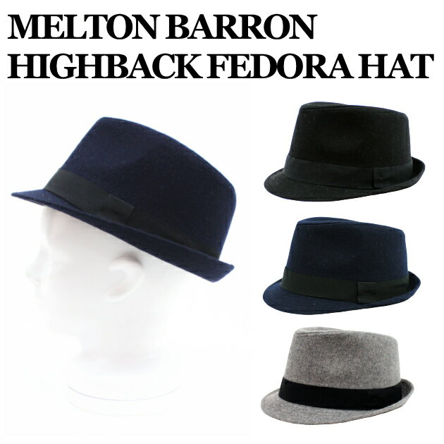 【メルトンバロン ハイバック 中折れハット】メンズ 秋冬 スーツ フォーマル プレゼント クリスマス 敬老の日 チェック柄 ブラック グレー ネイビー サイズ調整可能 【ラッピング対応】
