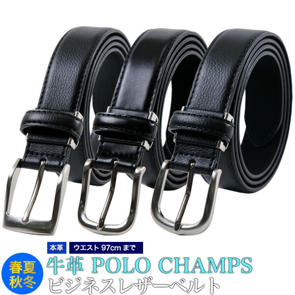 レザーベルト メンズ 牛革【POLO CHAMPS】本革(裏合皮) 紳士 ビジネス スクエア バックル 長さ調整 スーツ ブラック ビジネス カジュアル 冠婚葬祭 リクルートおしゃれウエスト97cmまで対応 2.9cm幅 プレゼント ギフト 誕生日 父の日