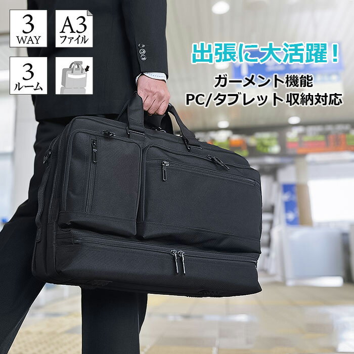 ブリーフケース ビジネスバッグ 出張 衣類収納 ガーメント 大容量 3WAY A3ファイル PC対応 メンズ 横 横型 黒 スーツ収納 カバン ガーメントバッグ キャリーバー GRAFIT KBN26715