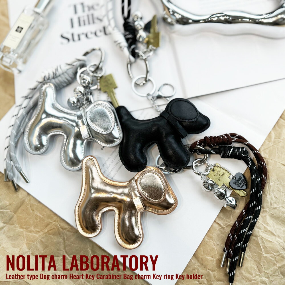 【 NOLITA / ノリータ 】 レザータイプ わんこ 犬 チャーム ハート 鍵 カラビナ バッグチャーム キーリング キーホルダー