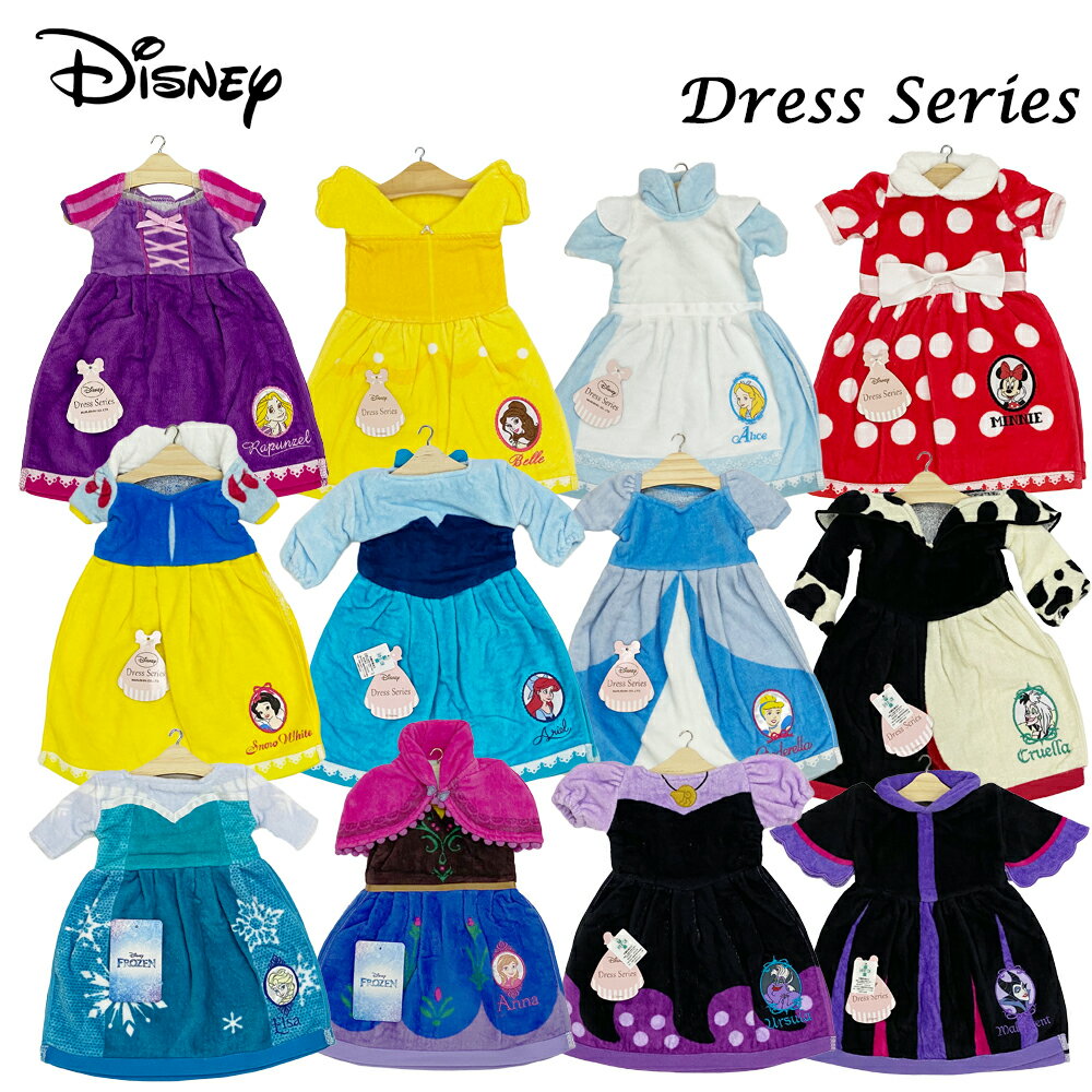 ディズニー プリンセス ドレスタオル シンデレラ ふしぎの国のアリス ミニーマウス ラプンツェル アナと雪の女王 白雪姫 美女と野獣 クルエラ マレフィセント リトルマーメイド Disney プレゼント お手拭 キャラクタータオル 女の子 ハンガー付きタオル 抗菌防臭加工