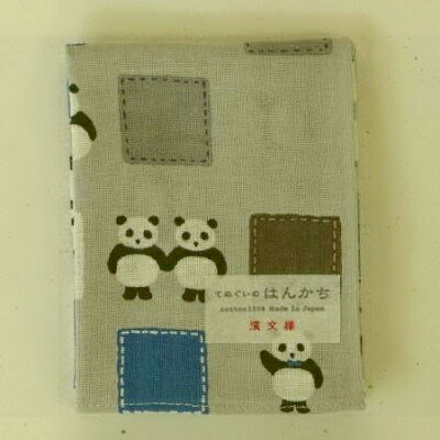 はんかち【 パッチワークパンダ 】手ぬぐい生地グレー 濱文様 ぱんだ柄