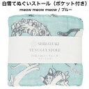 白雪てぬぐいストール(ポケット付き) / meow meow meow / ブルー ■保冷剤 ミニカイロ ふわふわ やわらかい 吸水 速乾 汗取りタオル かわいい おしゃれ レディース メンズ ランニング ジム 蚊帳生地 国産 綿 レーヨン 京友禅 プチギフト 人気 熱中症対策