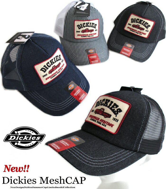 Sale!! Dickies ディッキーズ デニム メッシュキャップ ワッペン ( 3色展開 )定番 人気 デザイン 帽子 男女兼用 メンズ レディース ジュニア キッズ ( 57-59cm ) 旅行 紫外線 熱中症対策 アウトドア 父の日 プレゼント アメカジ レトロ 車 Mesh CAP 80495900