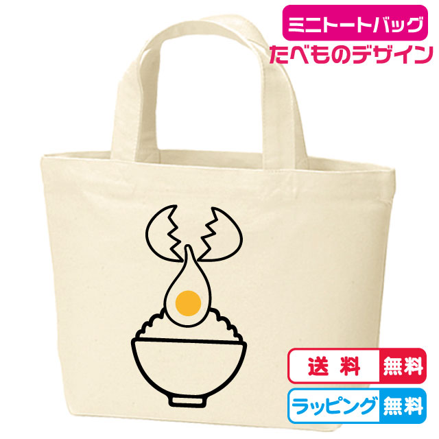 【おもしろトートバッグ】卵かけご飯ミニトートバッグ 全2色 綿100% キャンバス生地のトートバッグ TKGトートバッグ 卵トートバッグ お弁当入れ 通園バッグ 通学バッグ サブバッグ エコバッグ かわいいトートバッグ 玉子 卵かけご飯