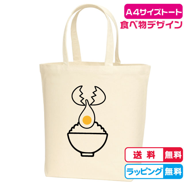 送料無料 A4サイズトートバッグ TKGトートバッグ 通園通学グッズ 帆布トートバッグ 【素材】 綿100%キャンバス生地 【サイズ】 平置き タテ:37cm ヨコ:36cm 持ち手 2.5×47cm 立体時マチ 11cm かわいいトートバッグ おもしろトートバッグ キッズプレゼント おもしろトートバッグ 面白グッズ 誕生日プレゼント【食べ物デザイン 卵かけご飯Mサイズトートバッグ全2色 綿100%】 当店だけのオリジナルデザイン デザイン~プリントまで全て当店で製作しております 【素材】綿100%のキャンバス生地 たまごバッグ TKG 玉子バッグ エコバッグ おもしろバッグ オリジナルトート かわいいトートバッグ キャンバストートバッグ ラッピング A4トートバッグ 入園バッグ 入学バッグ お弁当入れ サブバッグ レッスンバッグ