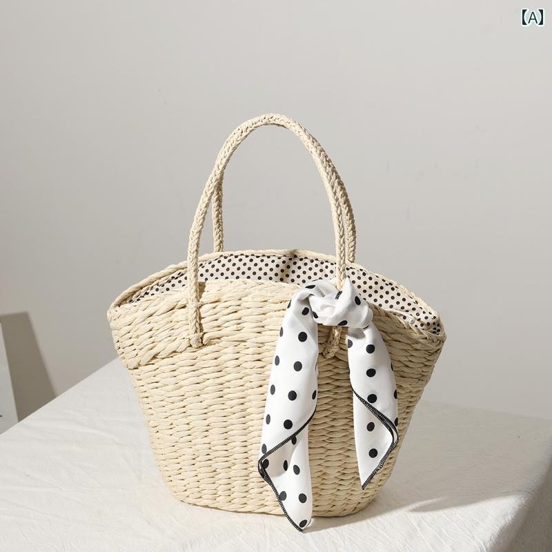 レディース バック おしゃれ 普段使い 麦わら かバック シェル スカーフ 手織り 農村 林 シングル ショルダー ポータブル 野菜 バスケット