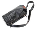 TOYS McCOY(トイズマッコイ)のレザーボディバッグ(ホースハイドダッフルバッグ型ボディバッグ 斜め掛けボディバッグ)です。 この製品は、ダッフルバッグのデザインをベースに、クラシックでタイムレスな雰囲気を残しつつも、トイズマッコイによってタウンユース用にアレンジされたカジュアルバッグです。本革のホースハイドレザーを用いて、ボディバッグとして普段使いに適した程よい良いサイズに改良されています。必要最低限の収納量と使いやすさを重視したシンプルなつくりにされ、カジュアルのテイストをプラスしたファッショナブルなデザインに仕上げられています。 縦型の円筒形のワンショルダータイプのボディバッグで、サイズはバッグ本体が高さ:31cm / 横:20cm/ 底面直径:14cmの縦型メンズフリーサイズ(ワンサイズ)です。重さは約410gです。 素材は馬革(本革ホースハイド)です。荒々しいシボの表情を持った堅固で引き締まった革質と、しなやかな質感を併せ持ったレザーです。本来、馬革は表面の滑らかな部分が少ないため、傷やシワが多々見られます。このバッグは、馬革独特のシワをそのまま活かし、滑らかな馬革とは違った魅力を持ちます。レザージャケットと同じく経年変化していく様も楽しめるバッグです。 同素材のショルダーストラップは、スライドアジャスターで長さ調節可能で、カラビナでバッグ本体に留められています。 底部のダイヤモンドステッチのパッド仕様切替がデザインのアクセントにされています。また、リベット打ちのハンドル(持ち手)も付けられていますので、手提げで持つこともできます。 バッグの収納部は1つのみで内ポケットや外ポケットは付きません。バッグの内側はリップストップの裏地が付けられています。バッグのサイドについているファスナーで収納物に容易にアクセスできる設計にされています。ジッパーのスライダー引手部分には、グローブや手袋などをしていても、簡単に開閉が可能になるよう考慮されたレザーのタブが付きます。 普段の街歩き、レジャー、旅行、自転車乗り、タウンユース等に使い勝手の良いカジュアルデザインです。とってもかっこいいトイズマッコイボディバッグです。 作品名は「TOYS McCOY LEATHER DUFFLE SACK TMA2423 トイズマッコイ ホースハイドレザー ダッフルバッグタイプボディバッグ スリングバッグ カラビナ留めショルダーストラップ付き 斜め掛けボディバッグ スモールクロスボディバッグ ショルダーチェストミニバッグ ワンショルダースモールバッグ メンズ カジュアル ファッション アメカジ 鞄 カバン」です。 Product Description in English. TOYS McCOY Leather Mini Duffle Sling Bag Men's Casual Small Crossbody Bag TMA2423 Black This men's casual leather sling bag / crossbody bag is made in Japan and designed and produced by Toys McCoy. The design is inspired by classic duffle bags, while incorporating horsehide leather fabric, adapting to modern lifestyles with a compact size perfect for daily use. This piece blends nostalgic charm and timeless elements with TOYS McCOY's expert craftsmanship, offering high-quality materials, modern durability, and a casual yet stylish aesthetic. Made from genuine horsehide leather, the bag includes an adjustable horsehide leather shoulder strap attached with a carabiner clip. The bag has a cylindrical, vertical shape with dimensions of 31 cm (12.2") in height, 20 cm (7.9") in width, and a bottom diameter of 14 cm (5.5"), and weighs approximately 410g (0.9 lbs). Featuring a minimalist design, this bag is constructed with a single compartment lined with durable nylon ripstop, without any pockets inside or outside. The side zipper closure provides easy access to the contents inside. The bottom of the bag is reinforced with diamond quilting stitches for added design and strength. Additionally, a riveted handle on the side of the bag offers alternative carrying options. The shoulder strap, adjustable up to 110 cm (43.3") with a slide adjuster, attaches via carabiner, enhancing the bag's functionality. The top of the bag has four metal eyelets, which are secured by folding down the top and threading a metal toggle loop through each eyelet, then attaching the carabiner of the shoulder strap to the end. If necessary, the top of the bag can be also opened by detaching the carabiner of the shoulder strap from the metal toggle loop. This item is a brand-new, original creation from Toys McCoy, blending vintage-inspired aesthetics with modern versatility and craftsmanship. Gender : Mens or Unisex. Our model is 175 cm/5'9″tall, 59 kg/130 lbs and 91 cm/36" chest. Size : The bag has a cylindrical, vertical shape with dimensions of 31 cm (12.2") in height, 20 cm (7.9") in width, and a bottom diameter of 14 cm (5.5"), and weighs approximately 410g (0.9 lbs). Material : Made with 100% pure thick horsehide leather in black color. Vegetable and chrome combination tanned, pigmented genuine horsehide for a firm-yet-supple hand. Rugged-grain and old-fashioned appearance on the face of the fabric for the fashionable vintage feel and look. This real leather combines the durability and the natural softness. The horsehide is even tough, yet it remains pliable. Since horsehide originally does not have a smooth surface, it has many wrinkles. This bag has the wrinkles that are unique to horsehide, giving it a different appeal from smooth leathers. This is normal in a horsehide bag. and it isn't a defect. For a v