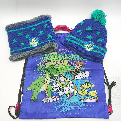 ◇ ⊇ 《 Disney Pixar まとめ売り3点セット トイストーリー キッズ スヌード ニット帽 ナップザック 男の子 》 E 【中古】