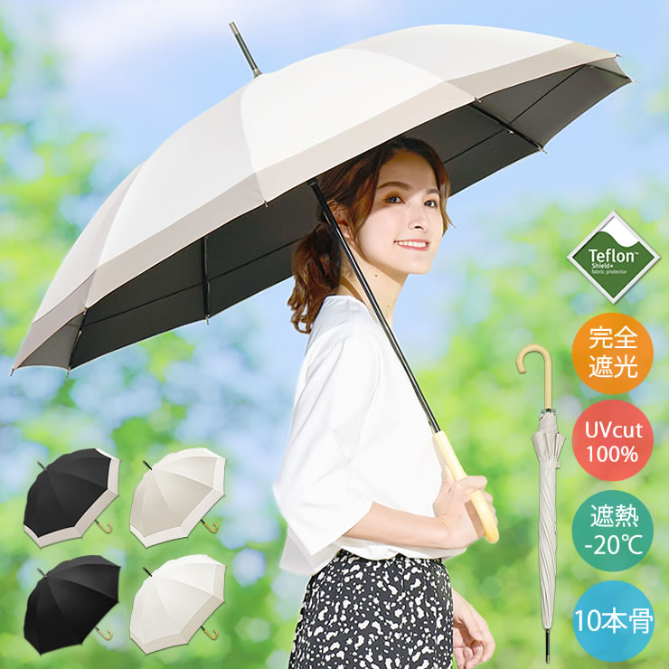 日傘 完全遮光 長傘 晴雨兼用 10本骨[ ブラックコーティングで反射光も遮断 マイナス20度の遮熱効果 テフロン加工ではっ水 防汚 大きい107cm ] uvカット 100 遮光 レディース 雨傘 人気 おしゃれ 日傘兼用雨傘 軽量 紫外線対策 グッズ LAD WEATHER ラドウェザー