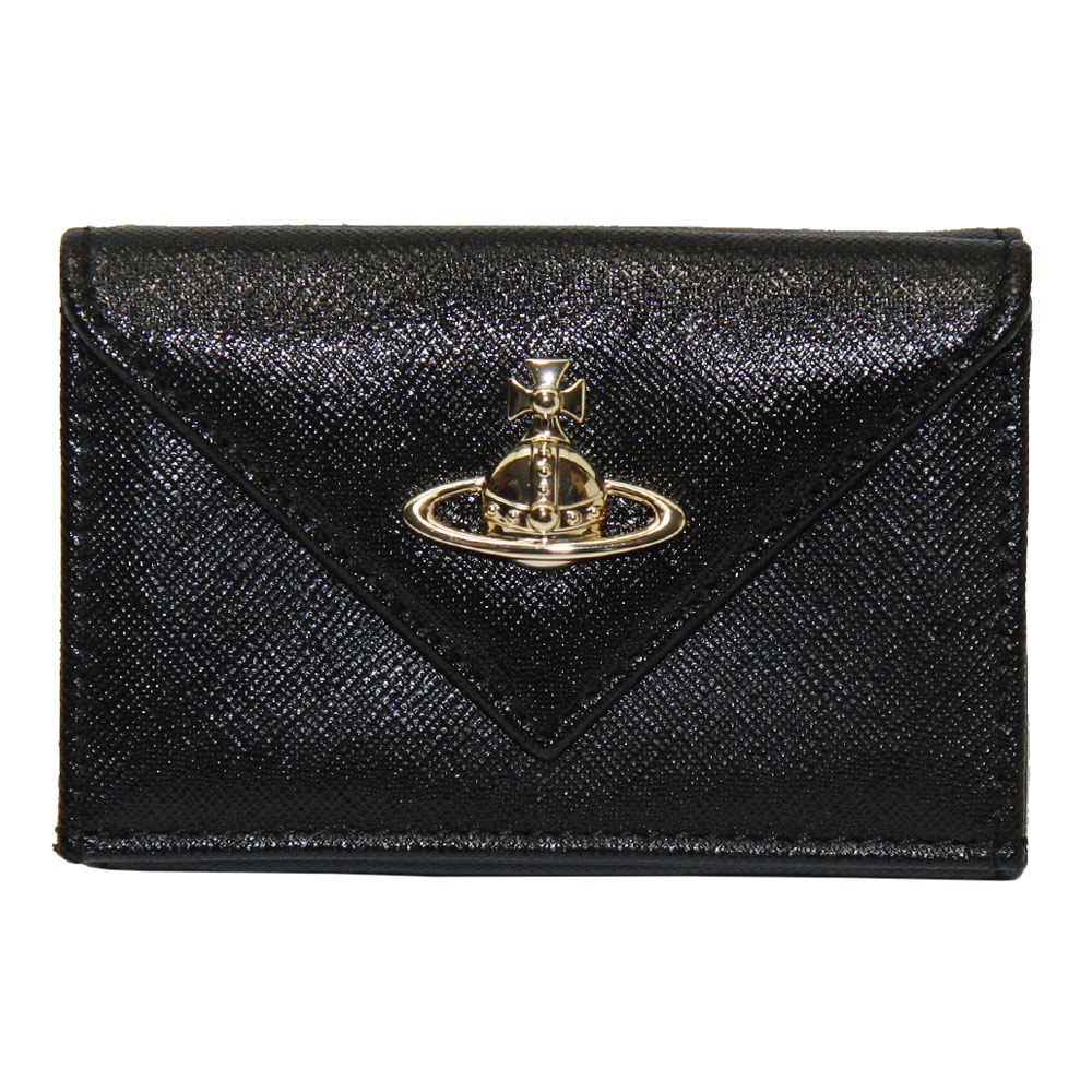 【送料無料】ヴィヴィアンウエストウッド 財布 三つ折り ミニ財布 Vivienne Westwood コンパクト 小銭入れあり 5115002EW L001N N402 ENVELOPE BILLFOLD SAFFIANO LEATHER BLACK ブラック レザー 本革 ビビアン【ブランド】【プレゼント】