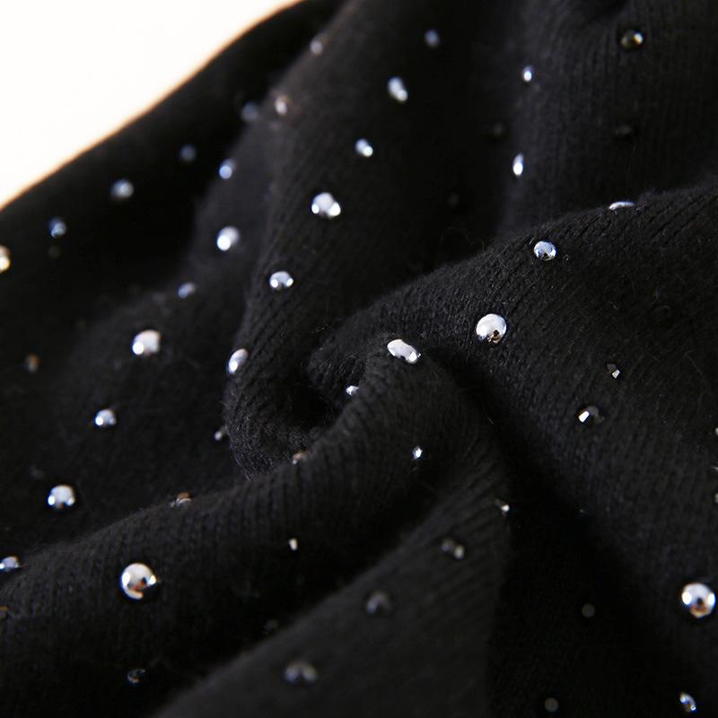 ニット帽 レディース 狐の毛 ボンボン付き ウール混紡 暖かい 秋冬 水晶 キラキラ ブラック ホワイト グレー ブラウン2