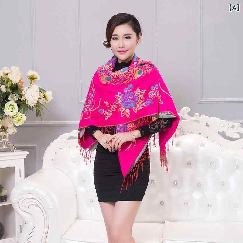 ・カテゴリ: ショール・性別: レディース・素材: フェイク・スタイル: レトロエスニック・柄: 花柄・要素: フリンジ・形状: スクエア・サイズ: 約135cm x 135cm・織り方: 経編・加工方法: ジャカード織り・機能: 保温・対象年齢: 成人・カラー展開: ローズレッド、レッド、ピンク、ロイヤルブルー、パープル、ピーコックブルー