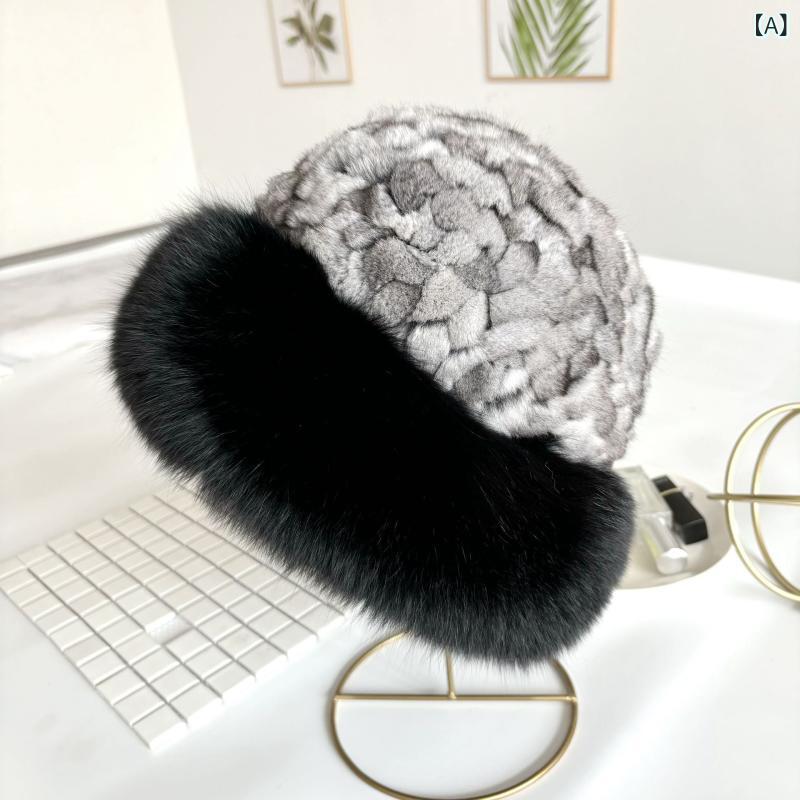 帽子 レディース チンチラファー フォックスファー バケットハット 秋冬 保温 防寒 耳当て付き 小顔効果 肉厚 韓国ファッション ナチュラルカラー カジュアル