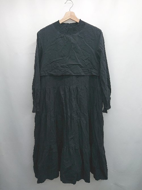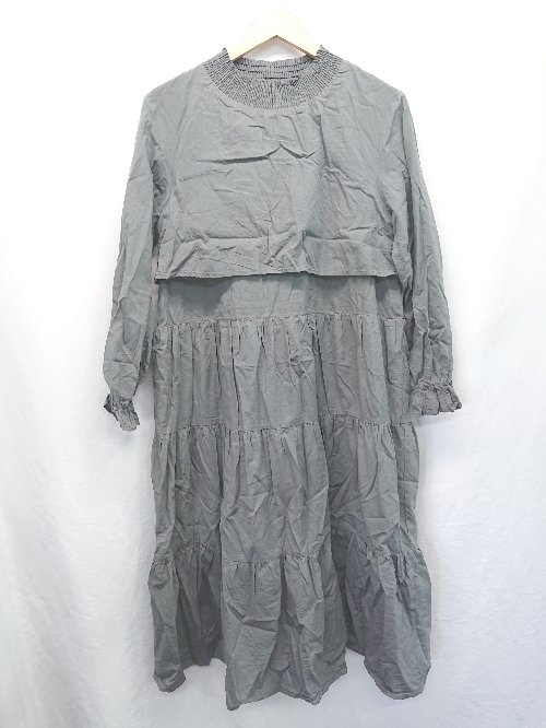 ◇ Θ w closet ダブルクローゼット 長袖 膝下丈 ティアード ワンピース サイズM チャコールグレー系 レディース E 【中古】