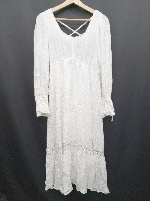 ◇ ⊂ w closet ダブルクローゼット コットン100% 長袖 ロング ワンピース サイズF ホワイト レディース E 【中古】