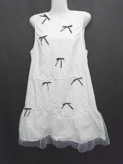 ◇ ⊂ ◎ ●未使用● Alley by w closet リボン チュール ノースリーブ ミニ ワンピース サイズF ホワイト レディース E 【中古】