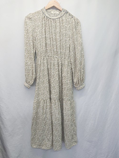 ◇ ⊂ w closet ダブルクローゼット 小花柄 長袖 ロング ワンピース サイズM ベージュ系 レディース E 【中古】