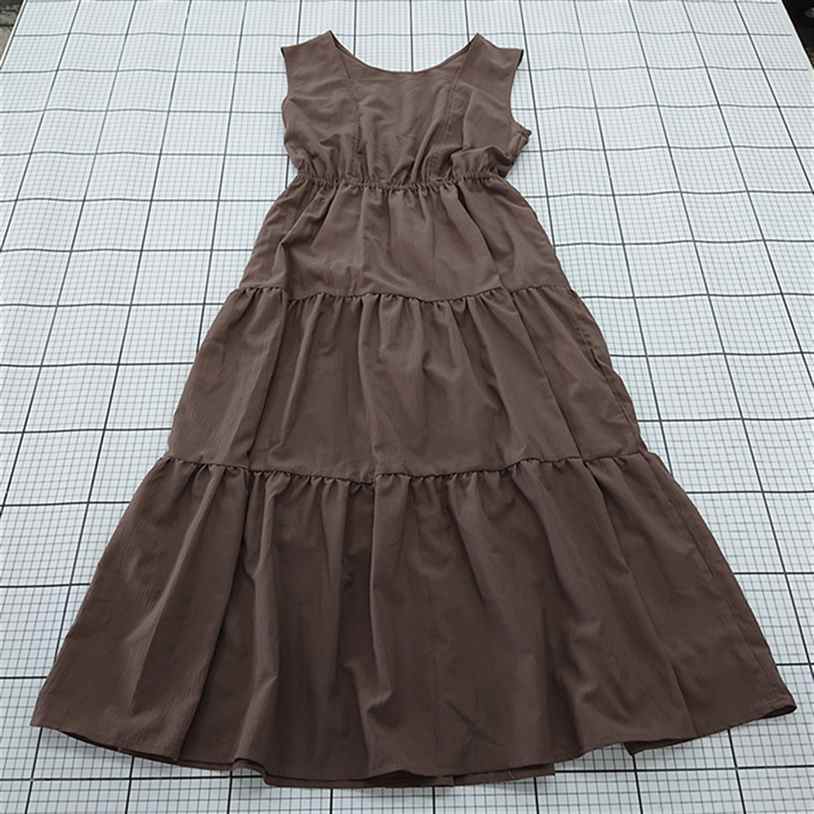 ◇ ⊂ w closet ダブルクローゼット ティアード ロング丈 ノースリーブ ワンピース サイズF モカ系 レディース E 【中古】