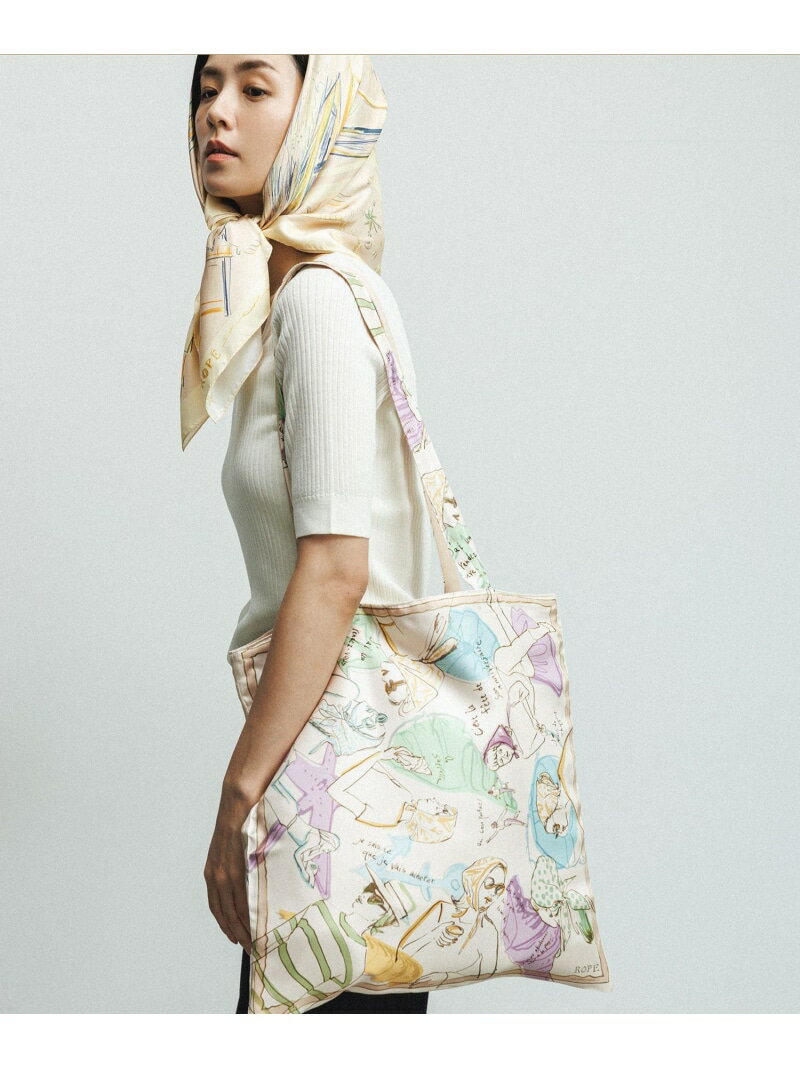 【SALE/30%OFF】ROPE' 【YUKO SAEKI for ROPE'・コラボ】スカーフ柄プリント シルクトートバッグ【A4対応】 ロペ バッグ トートバッグ ホワイト ベージュ【送料無料】