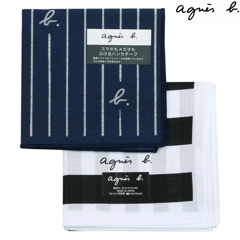 アニエスベー ハンカチ 2枚セット agnes b. ブランド ギフト プレゼント ラッピング無料 メガネ・液晶も拭ける マイクロファイバー / EasyCare コットン 紺×黒 24/7/2 110724【送料無料】
