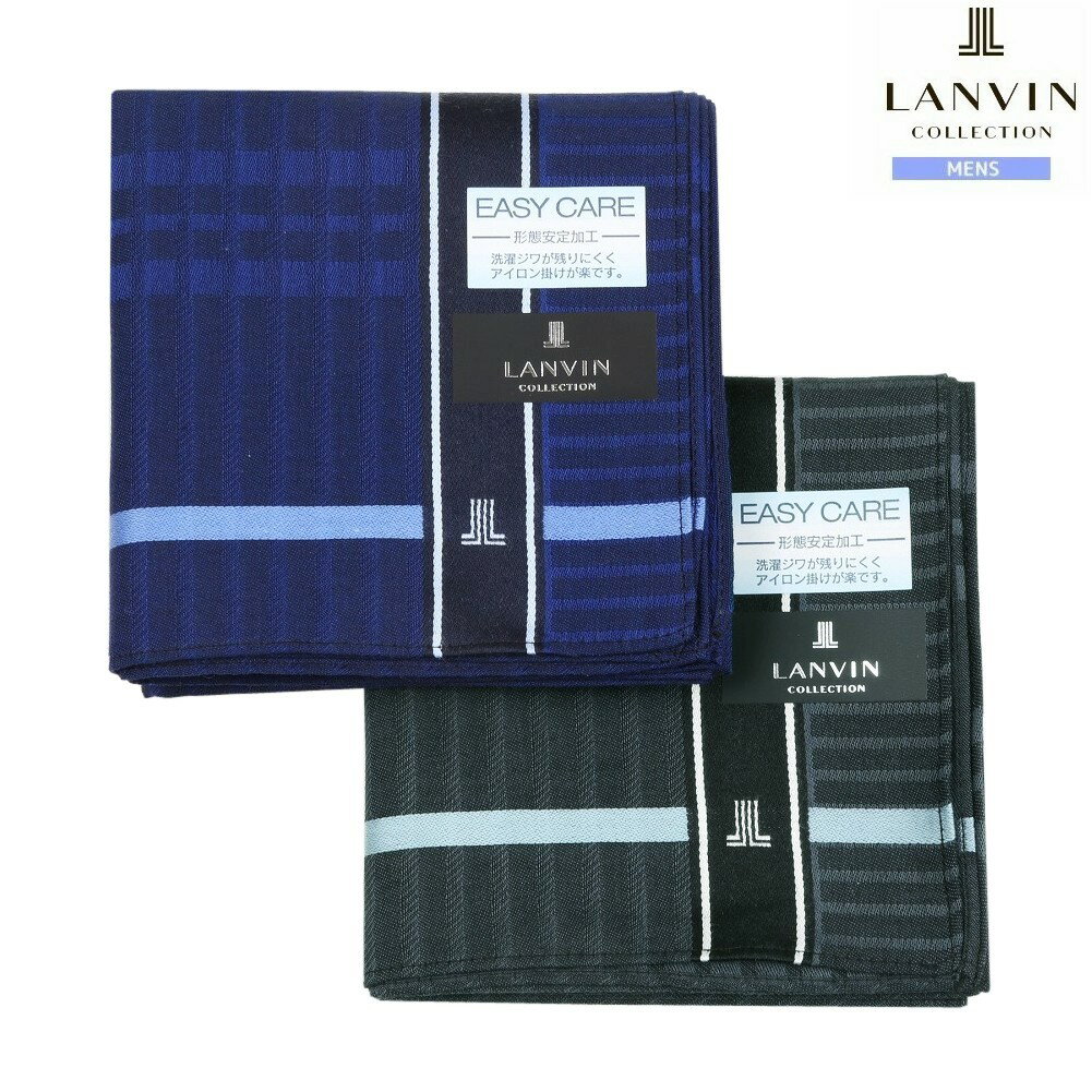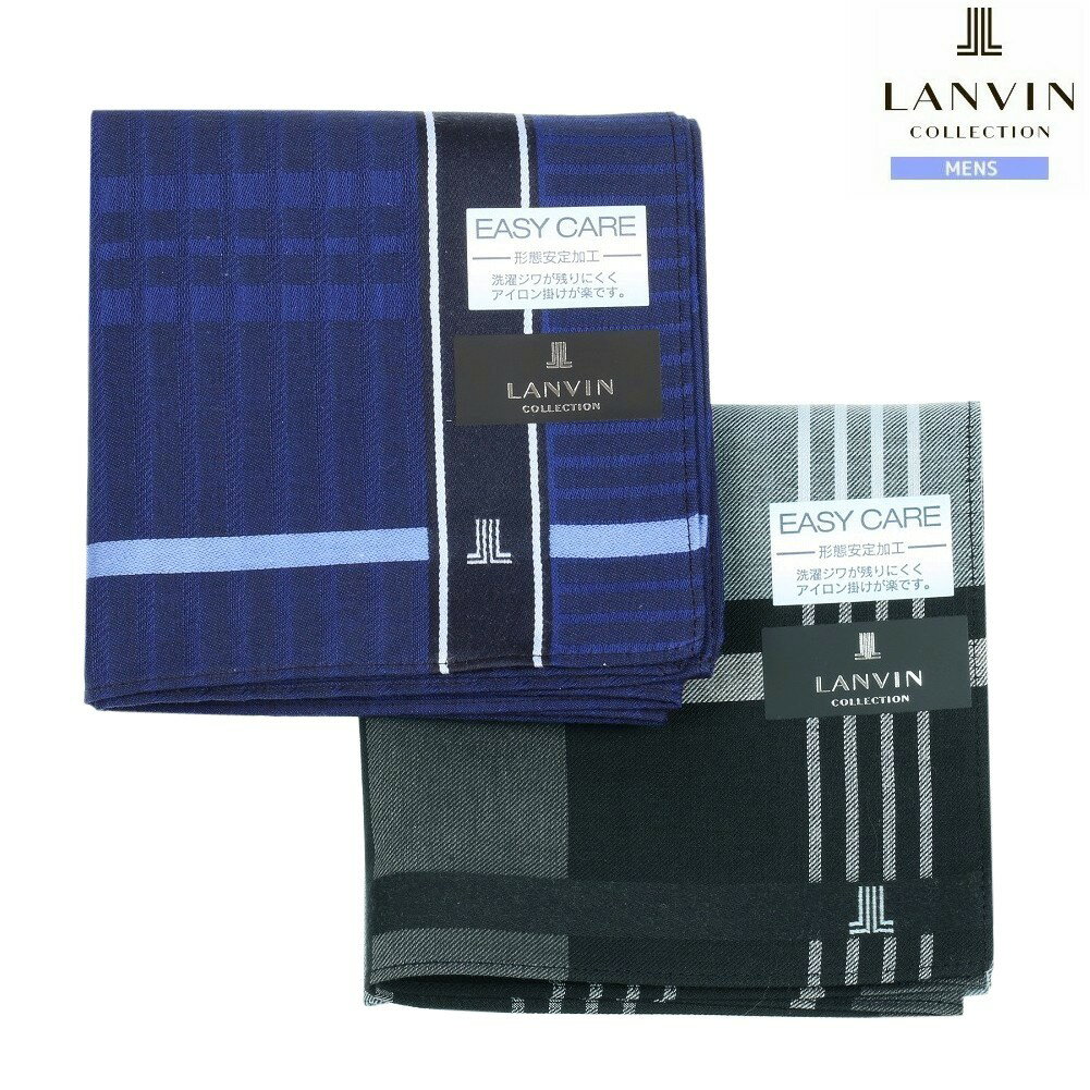ランバン ハンカチ 2枚セット LANVIN COLLECTION メンズ ブランド ギフト プレゼント 日本製 EasyCare チェック コットン 青×黒 25/1/2 090125【送料無料】