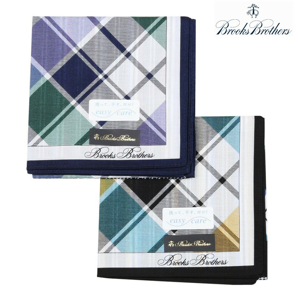 ブルックスブラザーズ ハンカチ 2枚セット Brooks Brothers メンズ ブランド ギフト プレゼント 日本製 EasyCare 抗菌防臭加工 チェック コットン 紺 24/7/2 110724【ネコポスで送料無料】