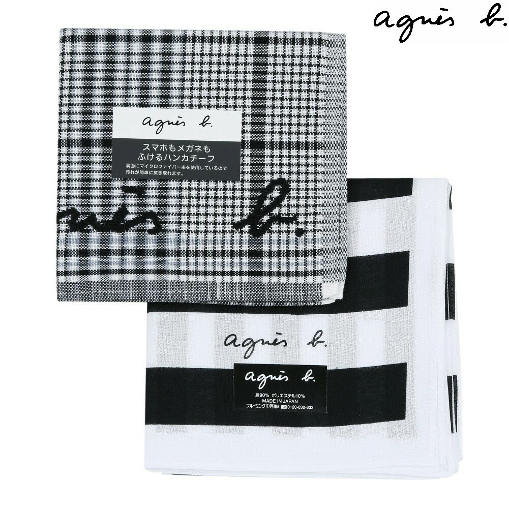 アニエスベー ハンカチ 2枚セット agnes b. ブランド ギフト プレゼント ラッピング無料 メガネ・液晶も拭ける マイクロファイバー / EasyCare コットン 白×黒 24/7/2 110724【送料無料】