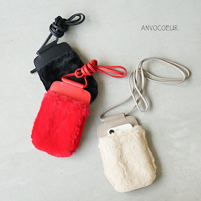 【SALE 50%OFF】[AC22309]ANVOCOEUR(アンボクール) Bell-eco fur(ベルエコファー)/スマホケース/コインケース/レザーサコッシュ/ポシェット レディース 本革 牛革 鞄 かばん[25pr]