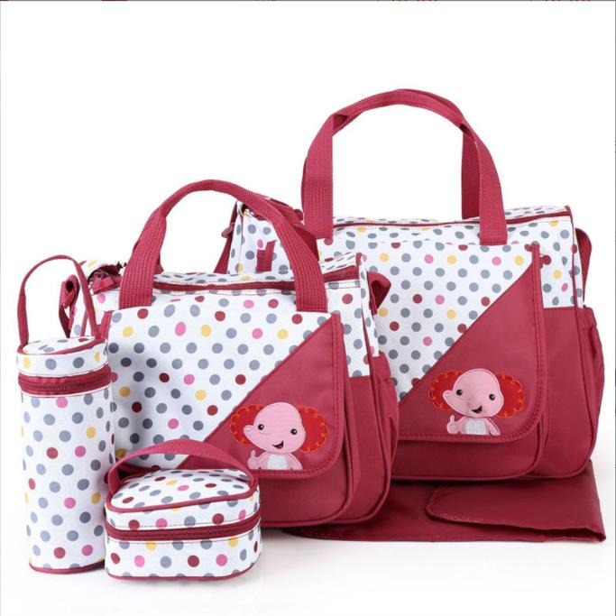 軽量 外出 ベビー用品収納 哺乳瓶ホルダー 撥水加工 リュック 大容量 ショルダーバッグ 5点セット 多機能 耐久性 旅行 プリント かわいい おむつポーチ マザーズバッグ アニマル柄