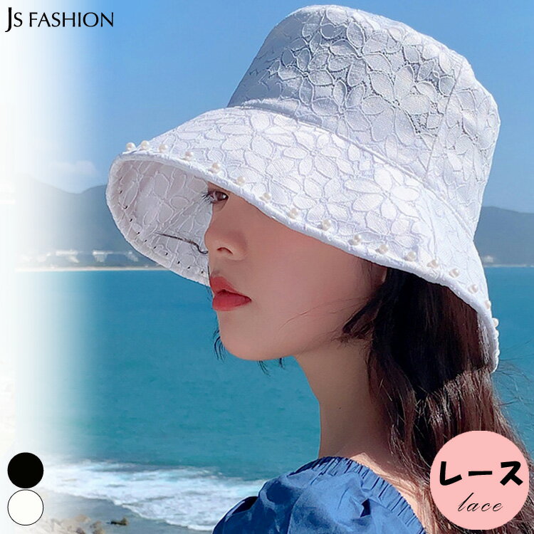 バケット ハット 全2色 レース パール付き UVカット バケットハット 黒 通気性 シースルー レジャー 紫外線対策 日焼け防止 夏帽子 海 ビーチ 日よけ帽 小顔効果 カジュアル帽子 折りたたみ可能 デイリー おしゃれ 韓国風 春 夏【bgm250010】