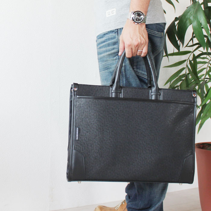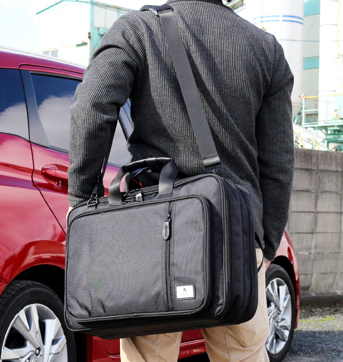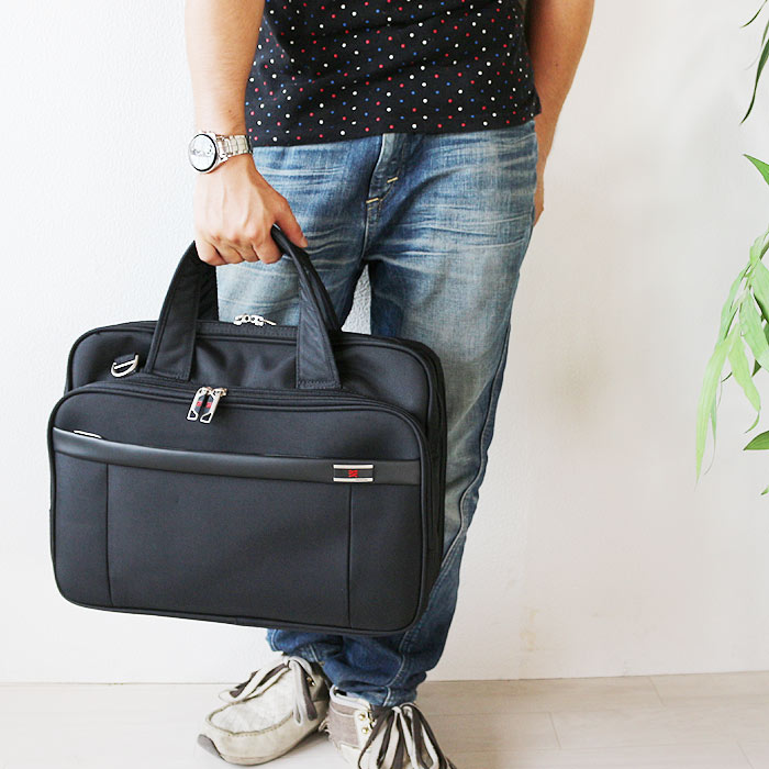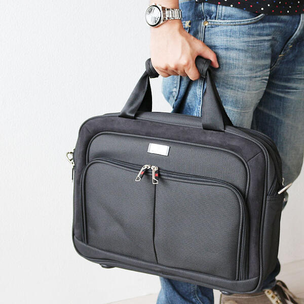 父の日 就職活動 就活 面接 新卒 買い替え プレゼントに 雨にも強く、 ショルダーやキャリーバー差込対応など多機能なビジネスバッグです!使い勝手がよくパソコン対応バッグです ■サイズ:幅400 奥行100 高さ300(mm) ■素材:ポリエステル1680D ■仕様外装:外:ファスナーポケット×2、 キャリーバー用バンド1 ■カラー:ブラック ■付属品:ショルダーベルト ■備考:ショルダーベルト長さ調整可能、 撥水効果あり ■重量:約1kg程度 ■納期:約7〜10日程度 ※北海道、一部地域に関しては別途送料が必要となります。 アタッシュケース。ブリースケースなどを総称してビジネスバッグと言います。男性用をメンズビジネスバッグ、 女性用をレディースビジネスバッグと言います。リクルートバッグは就職活動用で定番デザインで面接用に使われる事がおおい鞄です。そのあとに仕事に使える実用性のある鞄。2WAYや3WAYと言われるびじねすばっぐは仕事用としてフル活用ができ、 機能的で実用的なバッグが多く、 手提げスタイルだけではなくショルダーバッグ(肩下げ、 斜め掛けスタイル)やリュックサック、 トートバッグ(肩掛け)にもなる個性的なカバンの事で通勤用や通学用などによって使い分けが可能な多機能かばんの事を言います。ビジネスマンには欠かせない営業用や出張用などに便利なパソコン対応バッグやキャリーケースのバーに差込可能なバックもあります。中にはA4ファイルが入るA4対応商品や書類が沢山入る収納量(大容量)の多い物もあり営業用に大人気です。職種によって様々な形があり、 キャリアに合ったお洒落で紳士的で知的なデザインや、 必要最低限の内容でシンプルで無駄の無いスマートなスリムバッグ。ムダを省きスタイリッシュでクールに感じるデザインも。合成皮革はビニールレザー、 PVC、 PU、 ソフトレザーとも言われ雨に強く使い勝手の良い比較的安価な素材です。型押しデザインもあり、 カッコイイおしゃれな鞄も。ナイロン素材は安価ですが耐久性も強く撥水効果もある為、 ビジネスマンに多く使用されています。しんぷるな作りの物から高機能で格好良いバックもあって、 新卒からベテランまで幅広く使われる事が多い。本革素材は、 本物の皮を使用した高級素材で使い込むほど経年劣化により個性が出て味わい深く、 馴染み深い風合いが出て愛着がわきます。高価ですが、 ステータスにもなりおしゃれでかっこいいアイテムとして人気です。また、 女性用も通勤用のかわいいデザインやキャリアウーマン用の上品で高品質な鞄やCOOLでカワイイデザインも豊富。デザインは様々で多種多様です。格好いい物や可愛いものも沢山取り扱いさせて頂いております □□□ 新生活