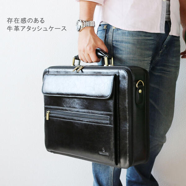 ※人気商品の為、 急に欠品になる場合がございます。 お急ぎの方は、 納期確認をお願い致します。 父の日 就職活動 就活 面接 就職祝い 新卒 買い替え プレゼント ギフトに 天然皮革素材の牛革スプリット・レザー。高級感溢れるアタッシュケースです。”雨に強く”実用的。ビジネスに使える内装2分割仕様で収納力が抜群です!パソコン対応で出張や書類が多いビジネスマンにお勧めです!もちろんA4ファイルも余裕で収納可能。収納量も納得できるビジネスバッグです ■サイズ:幅420 奥行110 高さ325(mm) ■素材:牛革(スプリットレザー) ■仕様内装:ポケット×1、 ペン指し×2、 カード入れ×6 ■仕様外装:被せマジックテープ式ポケットか×1、 ファスナーポケット×2 ■カラー:ブラック ■付属品:ショルダーベルト ■備考:防水効果あり、 PC収納対応、 底鋲付き ■重量:約2200g程度 ■納期3〜10日(メーカー在庫有りの場合) (お急ぎの場合はご確認下さい) ※北海道、一部地域に関しては別途送料が必要となります。 アタッシュケース。ブリースケースなどを総称してビジネスバッグと言います。男性用をメンズビジネスバッグ、 女性用をレディースビジネスバッグと言います。リクルートバッグは就職活動用で定番デザインで面接用に使われる事がおおい鞄です。そのあとに仕事に使える実用性のある鞄。2WAYや3WAYと言われるびじねすばっぐは仕事用としてフル活用ができ、 機能的で実用的なバッグが多く、 手提げスタイルだけではなくショルダーバッグ(肩下げ、 斜め掛けスタイル)やリュックサック、 トートバッグ(肩掛け)にもなる個性的なカバンの事で通勤用や通学用などによって使い分けが可能な多機能かばんの事を言います。ビジネスマンには欠かせない営業用や出張用などに便利なパソコン対応バッグやキャリーケースのバーに差込可能なバックもあります。中にはA4ファイルが入るA4対応商品や書類が沢山入る収納量(大容量)の多い物もあり営業用に大人気です。職種によって様々な形があり、 キャリアに合ったお洒落で紳士的で知的なデザインや、 必要最低限の内容でシンプルで無駄の無いスマートなスリムバッグ。ムダを省きスタイリッシュでクールに感じるデザインも。合成皮革はビニールレザー、 PVC、 PU、 ソフトレザーとも言われ雨に強く使い勝手の良い比較的安価な素材です。型押しデザインもあり、 カッコイイおしゃれな鞄も。ナイロン素材は安価ですが耐久性も強く撥水効果もある為、 ビジネスマンに多く使用されています。しんぷるな作りの物から高機能で格好良いバックもあって、 新卒からベテランまで幅広く使われる事が多い。本革素材は、 本物の皮を使用した高級素材で使い込むほど経年劣化により個性が出て味わい深く、 馴染み深い風合いが出て愛着がわきます。高価ですが、 ステータスにもなりおしゃれでかっこいいアイテムとして人気です。また、 女性用も通勤用のかわいいデザインやキャリアウーマン用の上品で高品質な鞄やCOOLでカワイイデザインも豊富。デザインは様々で多種多様です。格好いい物や可愛いものも沢山取り扱いさせて頂いております ※振込み決済は入金確認後の発送となりますので、 あす楽対象外となります。 【asrk_ninki_item】 新生活