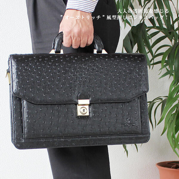 ※人気商品の為、急に欠品になる場合がございます。 お急ぎの方は、納期確認をお願い致します。 父の日 就職活動 就活 面接 新卒 買い替え プレゼントに ■本物と見違えるほどの仕上がり!?オーストリッチ風型押しビジネスバッグ ■サイズ:幅380 奥行95〜135 高さ250(mm) ■素材:合成皮革 ■仕様内装:ファスナーポケット×1、仕切りファスナーポケット×1、オープンポケット×1、ペン指し×2、カード入れ×2、ミニポケット×1 ■カラー:ブラック・ダークブラウン・グリーン ■付属品:ショルダーベルト ■備考:鍵付き ■重量:約1000g程度 (お急ぎの場合はご確認下さい) ※モデルチェンジの為、レビュー内容と異なる場合がございます ※北海道、一部地域に関しては別途送料が必要となります。 【鍵付き鞄】 旅行や出張などに使われる。キャスターが付いたバックをキャリーバッグ、キャリーケースと言います。国内旅行用カバンや海外旅行用鞄に使用するバッグで下に車輪がついて移動が楽に出来る設計となっています。また、サイズも様々で各商品によって異なりますが1泊用、2泊用、3泊用と小容量から大容量まで収納容量も異なります。日帰り旅行用かばんや修学旅行、兼ビジネスバッグとして出張用としても多用されております。ビジネスマンには欠かせない営業用や出張用などに便利なパソコン対応もあります。中にはA4ファイルが入るA4対応商品や書類が沢山入る収納量の多い物もありビジネスシーンに人気です。合成皮革はビニールレザー、PVC、PU、ソフトレザーとも言われ雨に強く使い勝手の良い比較的安価な素材です。ナイロン素材は安価ですが耐久性も強く撥水効果もある為、ビジネスマンに多く使用されています。本革は動物の皮を使用した高級素材で使い込むほど個性が出て風合いが出てきます。高価ですが、ステータスにもなりお洒落なアイテムとして人気です。 ギフト対応 ※振込み決済は入金確認後の発送となりますので、あす楽対象外となります。 【asrk_ninki_item】 こちらの商品は、小さくてコンパクトなデザインが特徴で、個性的でおすすめのアイテムです。カッコイイデザインはギフトとしてもぴったりです。母の日や父の日、敬老の日、クリスマスなどの特別な日に贈るのに最適です。また、合格祝いや進学内祝い、成人式、卒業記念品、入学祝い、就職祝いなど、さまざまなお祝いのシーンにもお使いいただけます。さらに、金婚式や銀婚式のお祝い、誕生日や昇進祝い、還暦の御祝いなど、さまざまな記念日やイベントにぴったりです。バレンタインデーとホワイトデーにも喜ばれるアイテムです。また、こどもの日や勤労感謝の日など、特定の日に感謝の気持ちを込めて贈るのにも最適です。新生活【CP】バッグのシリーズ一覧はこちら