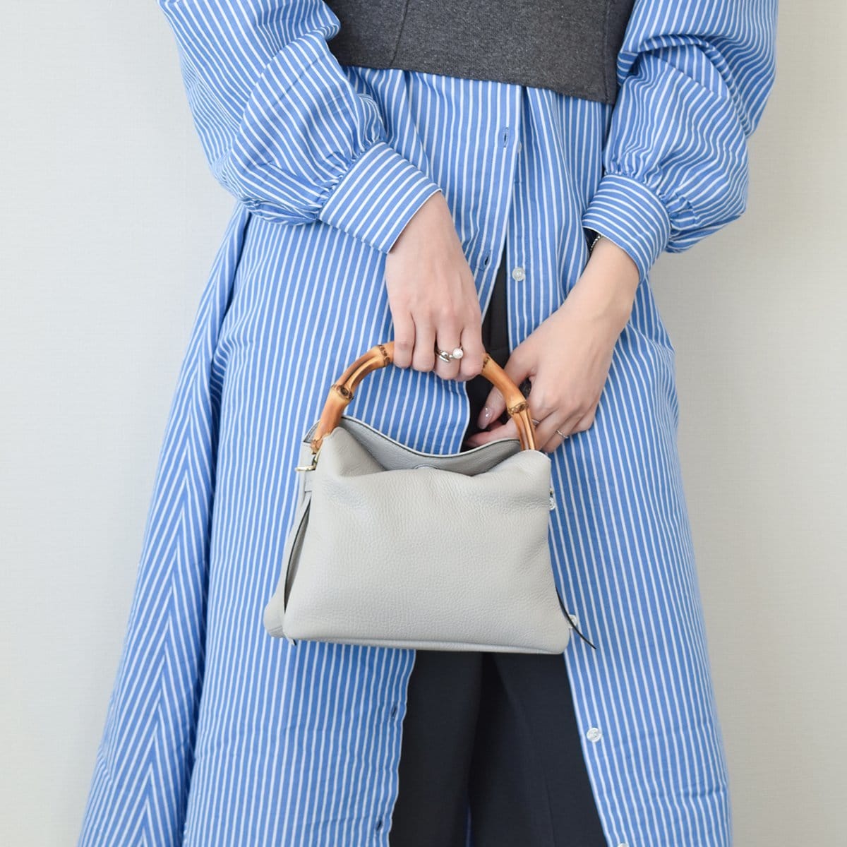 [型番:Q56408]2002年イタリア、アブルッツォ州にて創業されたブランド、ロリステッラ。デザイン、パターン、ファブリック、縫製まで徹底したMade in italyにこだわり、モダンでスタイリッシュなフォルムにフェミニンな要素を取り入れたデザインは欧州を中心にとても人気があります。ソフトな質感のレザーを使用したハンドバッグは、バンブーハンドルが春夏らしい雰囲気です。※生産過程に生じるキズが多少ある場合がございます。また素材の特性上、若干の色ムラ、擦れが見られる場合がございますが、こちらは素材の特性となります。※撮影時の光の当たり具合により色味が違って見える場合がございます 。また、お客様のお使いのPCモニターやスマートフォン画面などの環境により色味が実際の商品と違って見える場合がございます。予めご了承ください。※サイズ換算(表記)はあくまで目安となります。幅:約18-23.5cm高さ:約16cmマチ:約3cm持ち手高さ:約8cmショルダーストラップの長さ:約82-110cm重さ:約450g■カラー:ライトグレー※( )で表記されている数字はヌードサイズです。ヌードサイズとは衣服を身につけない身体のサイズです。お客様ご自身の身体サイズと比較してお選びください。 ■素材: 表素材:牛革 ■お手入: >>商品のお取り扱い方法 ■原産国: イタリアLORISTELLA◆バンブーハンドルソフトレザーハンドバッグ/ブリジットバーキンセレクト(Bridget Birkin Select)ライトグレーブラック画面上と実物では、多少色具合が異なって見える場合がございます。