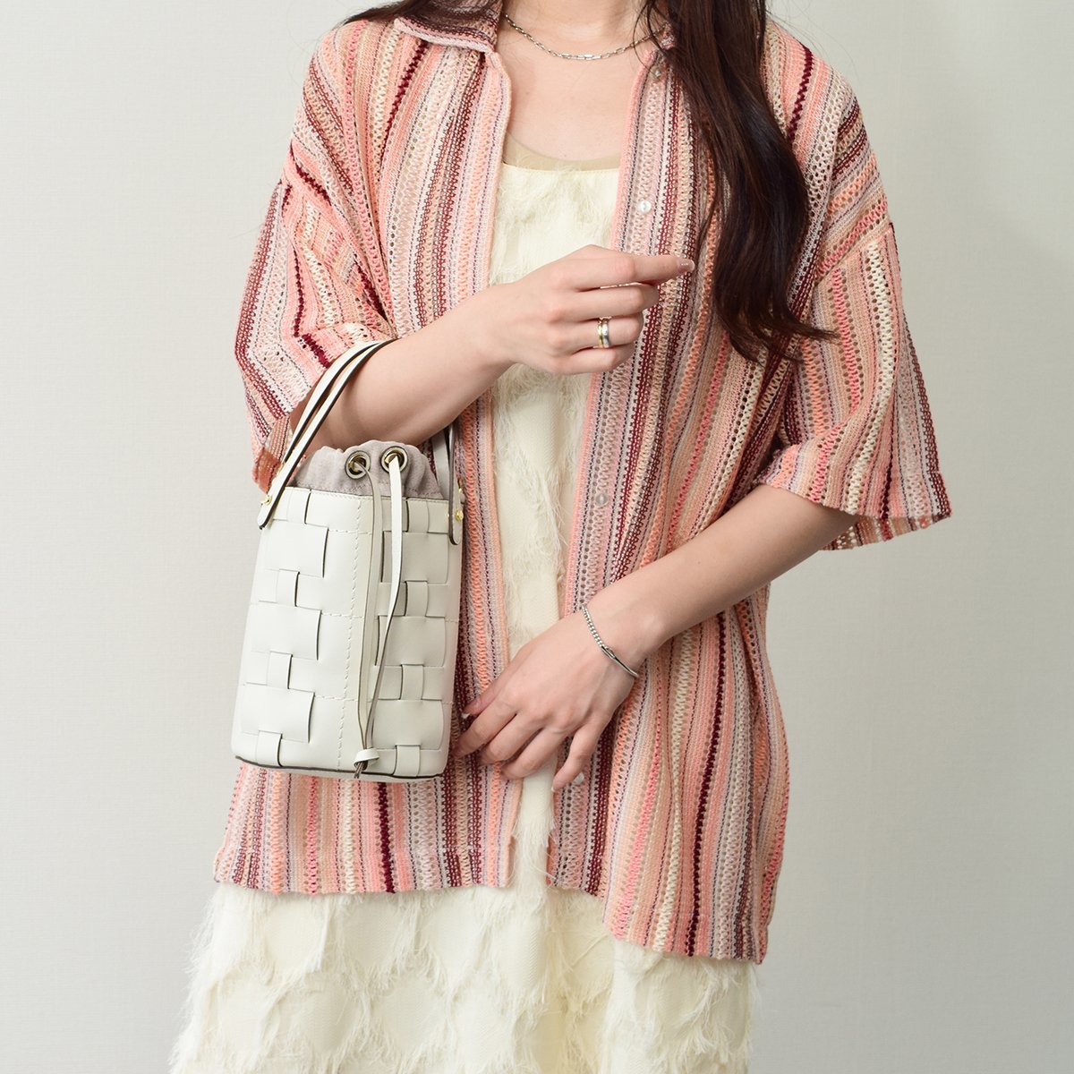 [型番:Q56505]2002年イタリア、アブルッツォ州にて創業されたブランド、ロリステッラ。デザイン、パターン、ファブリック、縫製まで徹底したMade in italyにこだわり、モダンでスタイリッシュなフォルムにフェミニンな要素を取り入れたデザインは欧州を中心にとても人気があります。編み込みレザー風のデザインが特徴的なレザーミニバケットバッグは、内側に巾着袋が付いているのも嬉しいポイント。ストラップ付。※生産過程に生じるキズが多少ある場合がございます。また素材の特性上、若干の色ムラ、擦れが見られる場合がございますが、こちらは素材の特性となります。※撮影時の光の当たり具合により色味が違って見える場合がございます 。また、お客様のお使いのPCモニターやスマートフォン画面などの環境により色味が実際の商品と違って見える場合がございます。予めご了承ください。※サイズ換算(表記)はあくまで目安となります。幅:約14cm高さ:約19cmマチ:約9cm持ち手高さ:約10cmショルダーストラップの長さ:約102-130cm重さ:約330g■カラー:アイボリー※( )で表記されている数字はヌードサイズです。ヌードサイズとは衣服を身につけない身体のサイズです。お客様ご自身の身体サイズと比較してお選びください。 ■素材: 表素材:牛革 ■お手入: >>商品のお取り扱い方法 ■原産国: イタリアLORISTELLA◆レザーミニバケットバッグ/ブリジットバーキンセレクト(Bridget Birkin Select)アイボリー画面上と実物では、多少色具合が異なって見える場合がございます。
