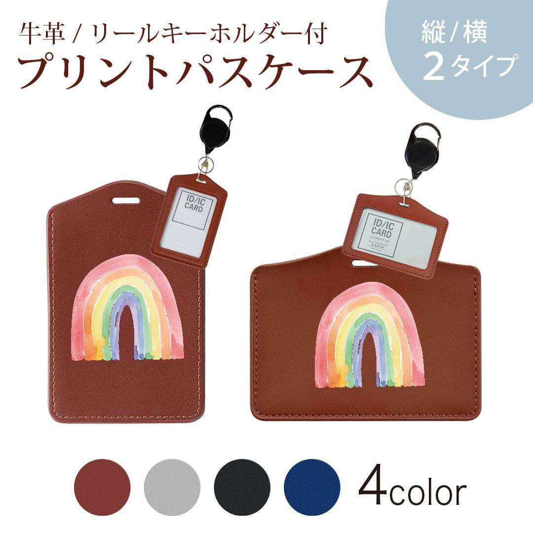 パスケース リールキーホルダー付 定期入れ IC IDカード入れ グレー ブラック ブラウン ネイビー 紛失防止 70cm伸びる 社員証入れ 通学 通勤 passcase 031716 虹 虹 カラフル 絵具