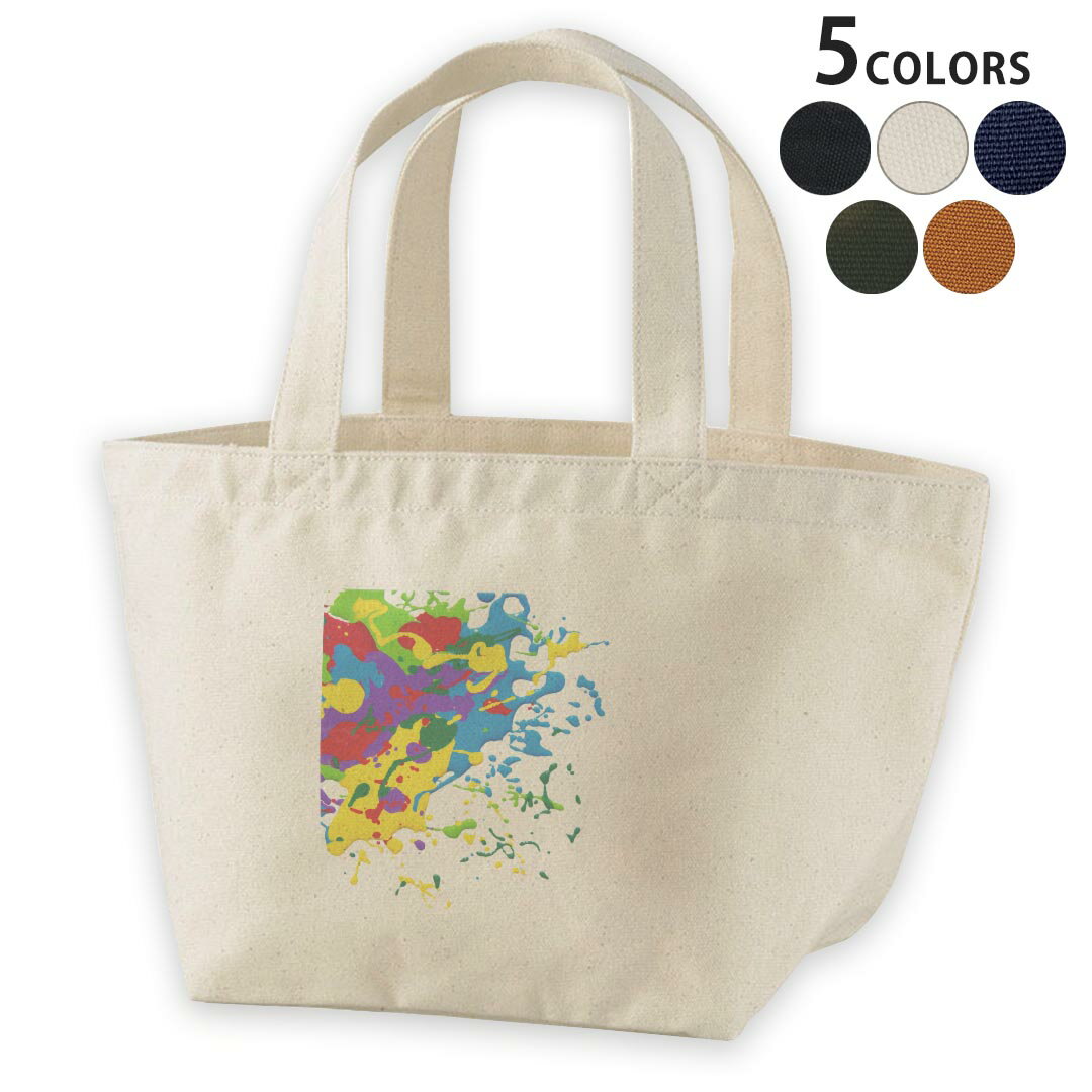 デザインランチバッグ キャンバス デイパック バッグ レディースバッグ トートバッグ ナチュラル 黒 black 001197 カラフル 絵具