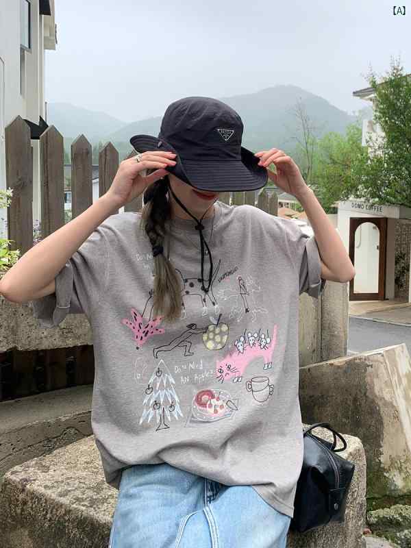 レディース Y2K アーバンファッション 海外ファッション レディース おしゃれ Luobian 子供 楽しい 時間 クール カラフル 落書き プリントコットン 半袖 Tシャツ 夏 ラウンドネック トップ