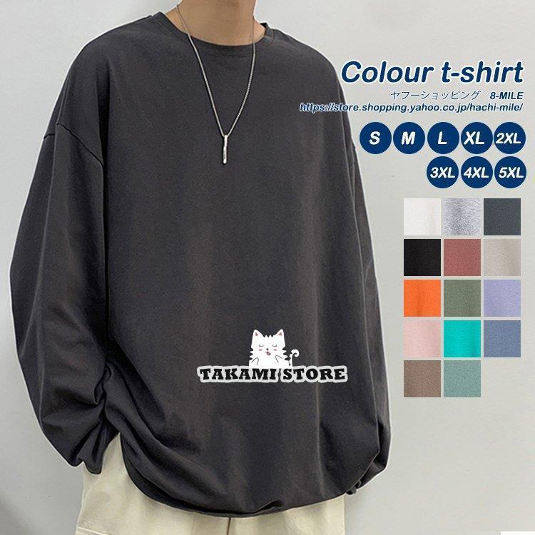 カットソー 長袖 メンズ 無地 カラフル 春 Tシャツ tシャツ 丸ネック インナー 秋 大きいサイズ お兄系