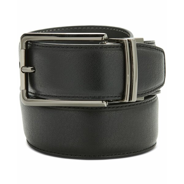 ペリーエリス メンズ ベルト アクセサリー Men's Safiano Reversible Textured Nickel Buckle Dress Belt Black