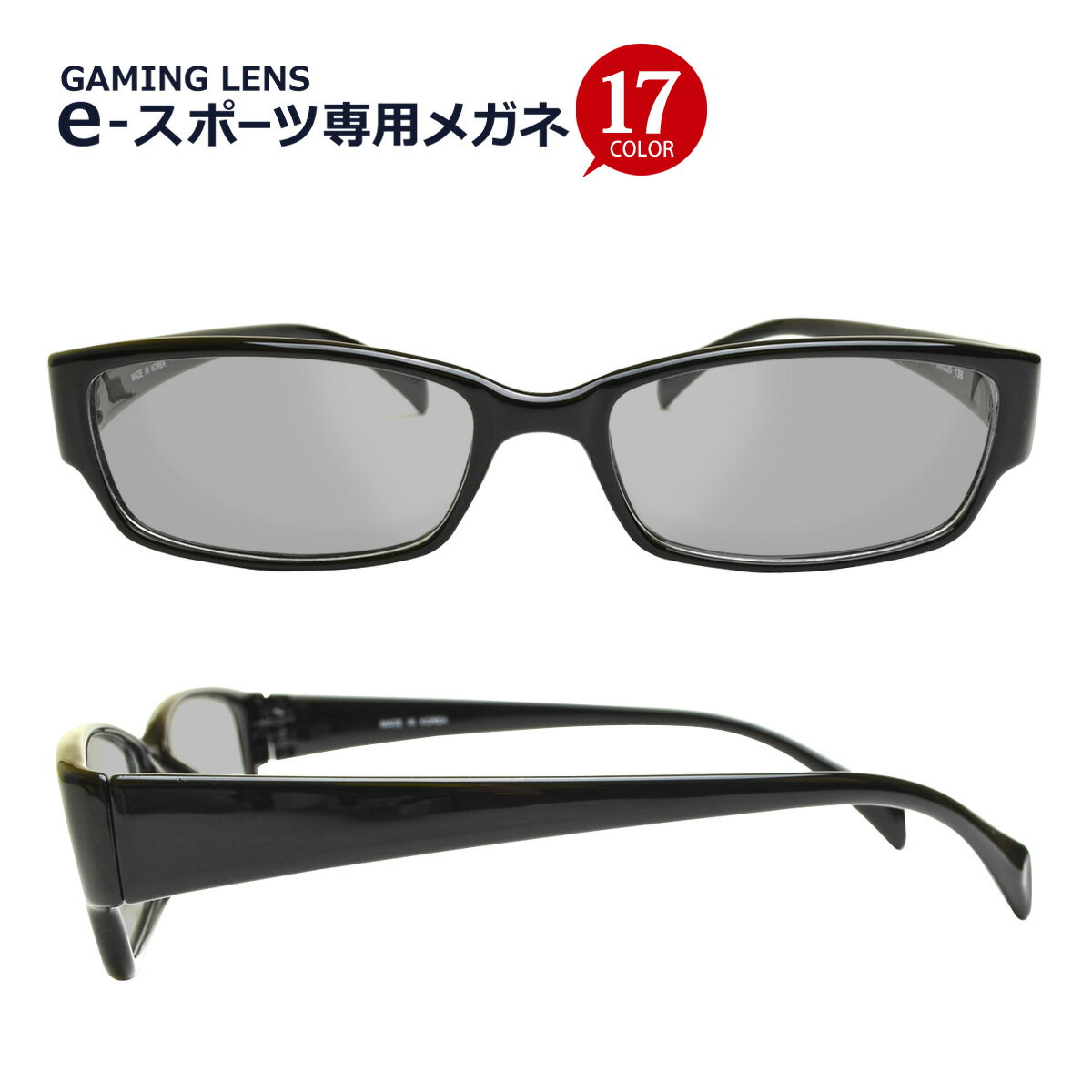 e-スポーツ専用メガネ 度入り・乱視対応 フレームタイプ【スクエア】 Lune-0001