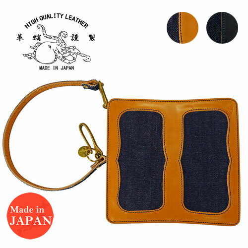 【革蛸】 【KAWATAKO】 台形 ロングウォレット ワレット 長財布 英国産 ブライドルレザー × 24ozデニム アースマーケット別注