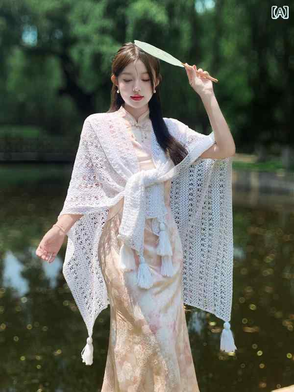 ポンチョ レディース 透かし編み ニット ショール エスニック 民族調 フリンジ ケープ 羽織り レトロ チャイナスタイル 旅行 リゾート 普段使い