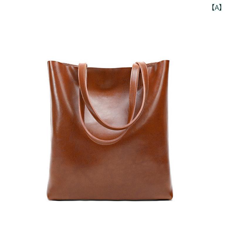 レディース バッグ ハンド レトロ大容量 ワックス 牛革 縦型 トートバッグ ショルダーバッグ 大型 バッグ 革 ハンドバッグ シンプル 女性用 ブリーフケース